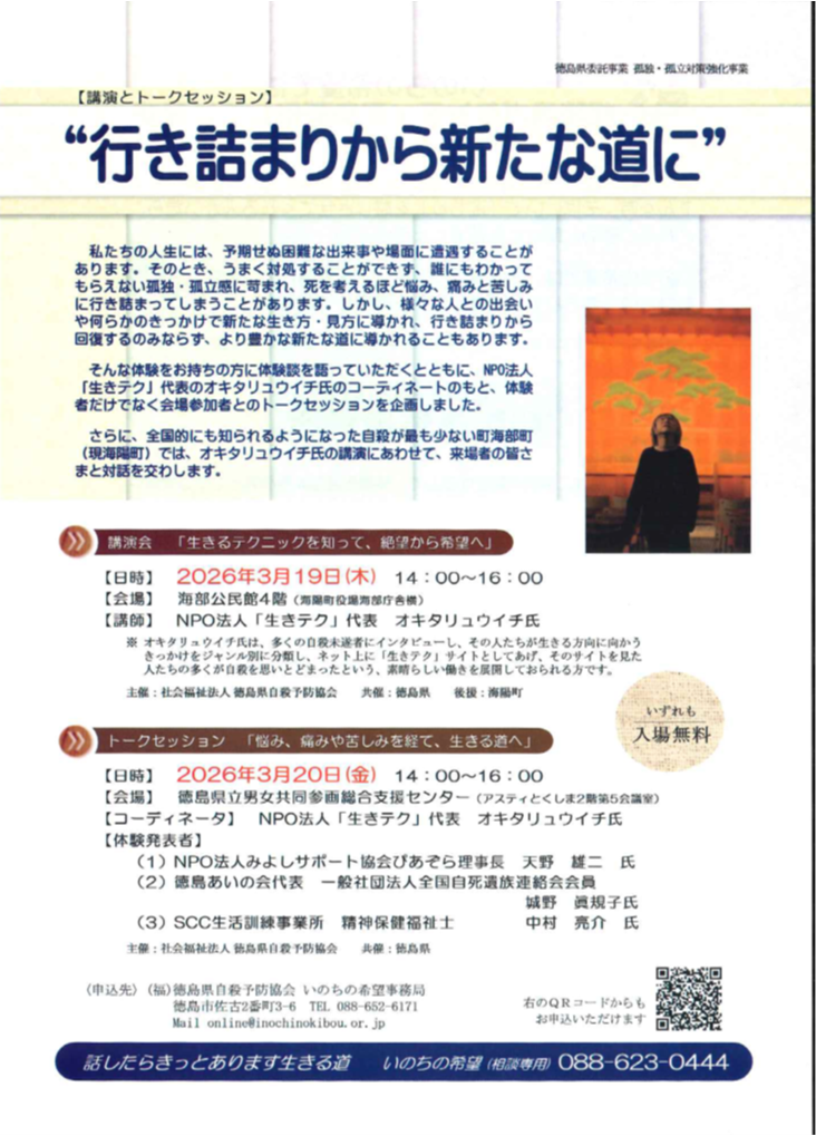 トークセッション:3月20日(金) 14:00~16:00 会場:徳島県立男女共同参画総合支援センター(アスティとくしま2階第5会議室)